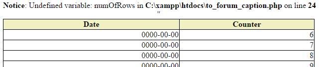 Undefined variable: numOfRows in C:\xampp\htdocs\to_forum_caption.php on line 24