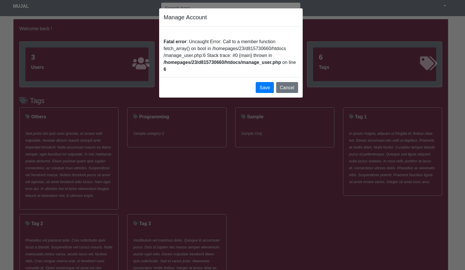 The âManage Accountâ issue goes with this line of code: